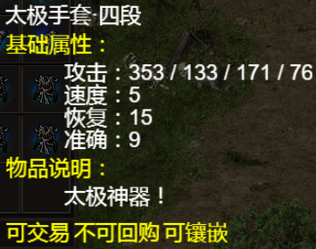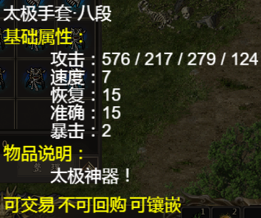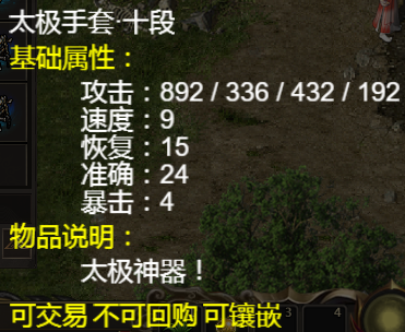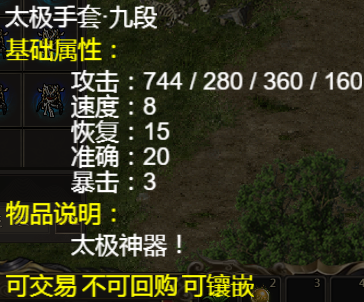 如果武器装备原有 速度 暴击 活力 等属性 附加属性将会 叠加 可参考下面的《太极手套》与《太极道袍》